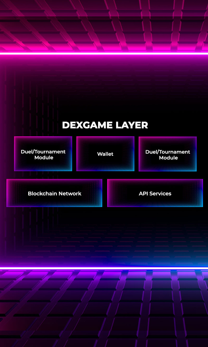 An abstract layer will be created with the open-source protocol to access the blockchain network to be used in the infrastructure. Thus, with the public Blockchain Access Layer, applications will be able to run on different blockchains. Platform tokens will be created on their respective blockchain networks and they will be ensured to have the same performance. The DEXGame Layer has a serverless process architecture to run various types of applications. With the components, it features; smart contract, oracle, resource and asset management, and off-chain processes that can be easily managed. These components communicate with the blockchain through the protocols in the Blockchain Access Layer and enable working directly with the consensus algorithms.